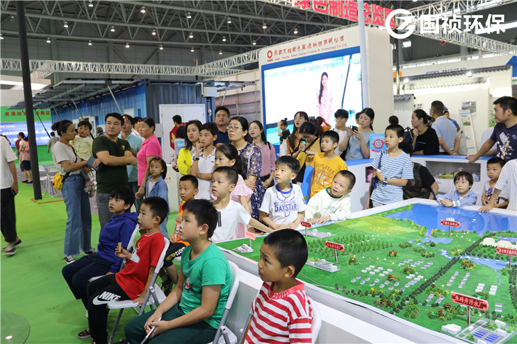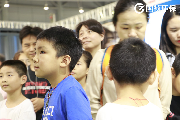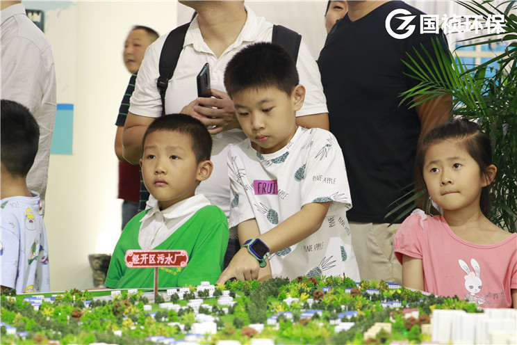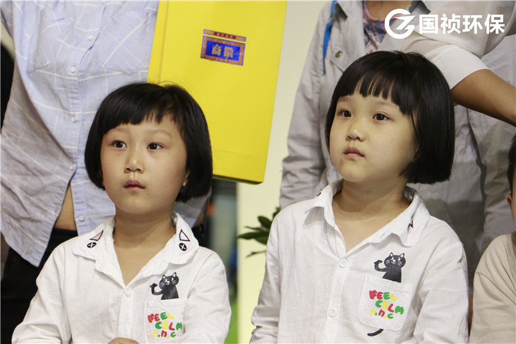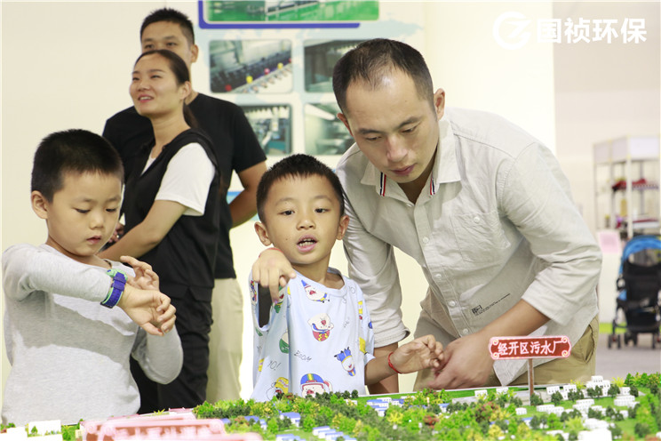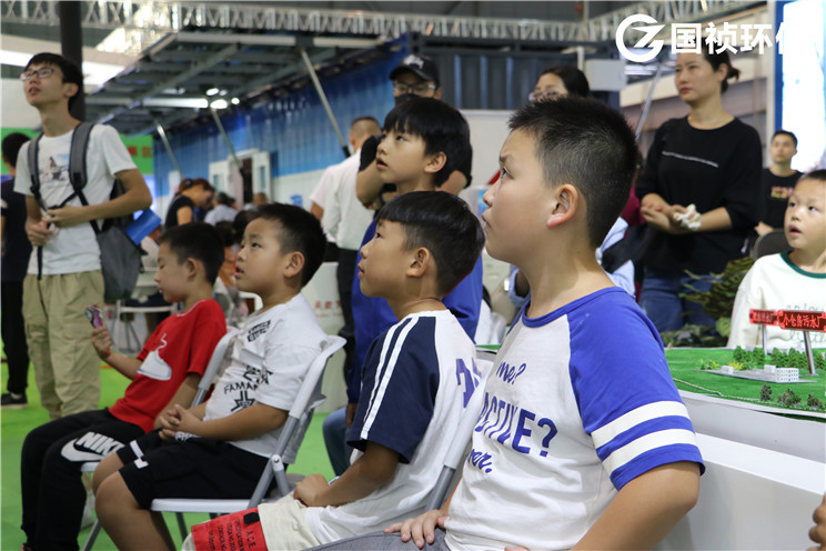 小朋友正在向小伙伴分享在國禎環(huán)保展廳情況