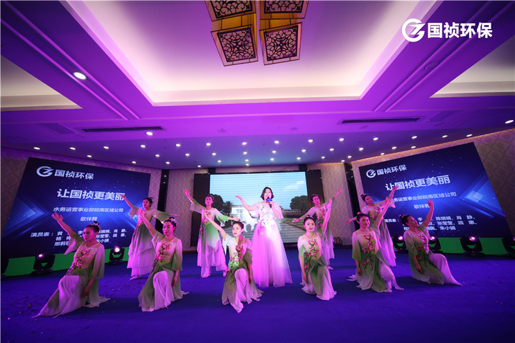 頒獎(jiǎng)典禮也穿插了很多員工自導(dǎo)自演的節(jié)目。既有活力四射的舞蹈《國(guó)禎范兒》《國(guó)禎練習(xí)生》,又有獨(dú)具韻味的《風(fēng)月》;評(píng)彈《秦淮景》讓我們領(lǐng)略到了金陵十里秦淮的繁華景象;歌伴舞《讓國(guó)禎更美麗》、歌曲《巡檢歸來》、《甲大人、乙大人》、詩朗誦《我的南方和北方》則展示出了國(guó)禎人的日常;《大話西游》讓我們看到投身環(huán)保的至尊寶;歌曲串燒《千千闕歌》《無所謂》《夜半小夜曲》余音繞梁、悅耳動(dòng)聽;器樂串燒《草原新牧民》《我只在乎你》《南方姑娘》則讓我們現(xiàn)場(chǎng)感受中西不同樂器之魅力;影子劇《呼吁》通過黑與白的“肢體”呼吁我們保護(hù)環(huán)境的重要性;詩朗誦《保護(hù)地球媽媽》則通過四個(gè)國(guó)禎二代發(fā)出保護(hù)地球的心愿。與會(huì)觀眾紛紛通過手機(jī)記錄一個(gè)個(gè)精彩的瞬間,與堅(jiān)守在工作一線的同事或遠(yuǎn)在他鄉(xiāng)的親人分享喜悅。頒獎(jiǎng)晚會(huì)在歌伴舞《我和我的祖國(guó)》中落下帷幕。