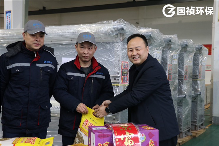 1月21日,徐本勇總經(jīng)理、殷皓副總經(jīng)理等一行冒雨先后奔赴國禎膜科技公司、朱磚井污水處理廠及小倉房污水處理廠,走進(jìn)車間、廠區(qū),慰問一線員工,并向大家致以新春問候。