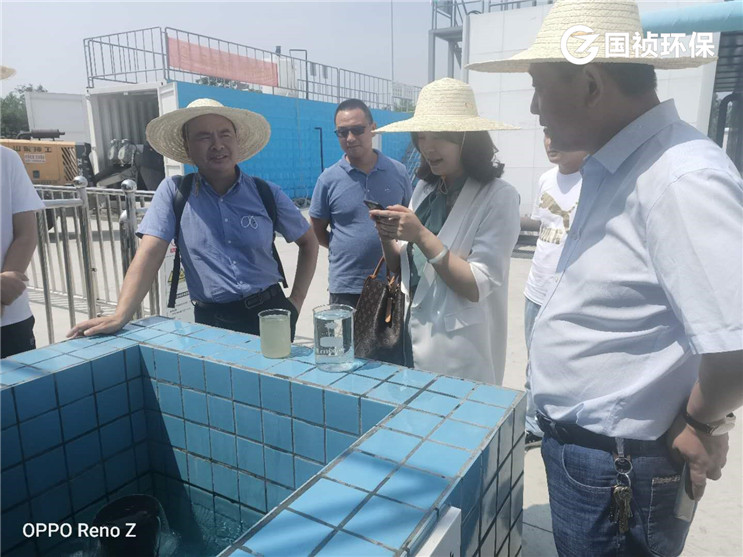 離開會談現(xiàn)場,李松珊董事長冒著烈日,視察了金翠路水質(zhì)凈化站以及杏花公園水生態(tài)治理項目。在金翠路水質(zhì)凈化站詳細了解水環(huán)境治理事業(yè)部自主研發(fā)的OPSM工藝技術、投資建設、生產(chǎn)運營情況,并深入現(xiàn)場實際查看運營工況,對OPSM工藝的出水情況非常滿意。