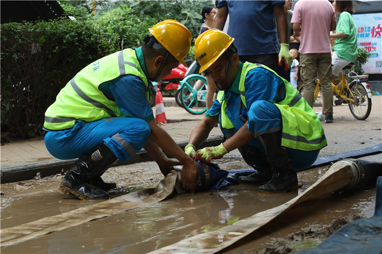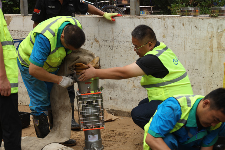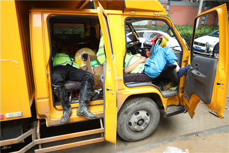 7月23日6點,中節(jié)能國禎抽調(diào)6名專業(yè)工程人員組成第二突擊隊,攜帶3輛皮卡巡查車、4臺搶險泵奔赴河南。11時與第一突擊隊匯合,共同參與鄭州隆福國際小區(qū)地下車庫排澇作業(yè)。