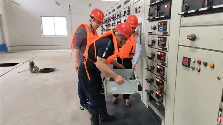 隨著演練總指揮的一聲令下,演練正式開始。參演人員立即按照演練方案要求各司其職,在廠區(qū)大門口、在線間門口、配電房門口等重要區(qū)域設(shè)置防汛沙袋,對(duì)廠內(nèi)低洼積水區(qū)域設(shè)置水泵進(jìn)行強(qiáng)排,為減少財(cái)產(chǎn)損失,將辦公樓一樓電腦、打印機(jī)、資料等貴重物品搬至二樓,對(duì)配電柜底部抽屜抽出放置在高處,對(duì)在線設(shè)備進(jìn)行拆除。隨著雨勢(shì)持續(xù)加大,河道水出現(xiàn)倒灌,廠內(nèi)已形成內(nèi)澇,為保障員工生命安全,總指揮下達(dá)撤離命令,在撤離過程中模擬搶救受困人員撤離。通過參演人員在演練過程中的分工合作、緊密配合,本次演練取得圓滿成功。